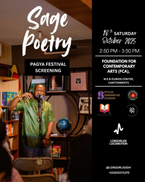 Sage Poetry is a curated Ghanaian poetry experience. The event will be presented as a 20-minute screening of live-recorded performances from August 2025, followed by a panel discussion on the importance of curation, archiving, and strategic partnerships in promoting poetry in the modern age.